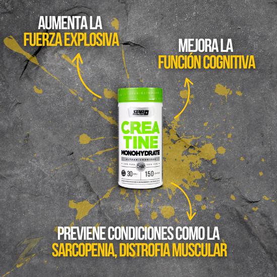 La creatina de Star Nutrition (150g) es ideal para quienes buscan no solo más fuerza y músculo, sino también una mejor recuperación, claridad mental y apoyo cardiovascular. Un suplemento respaldado por ciencia y listo para potenciar tu rutina.