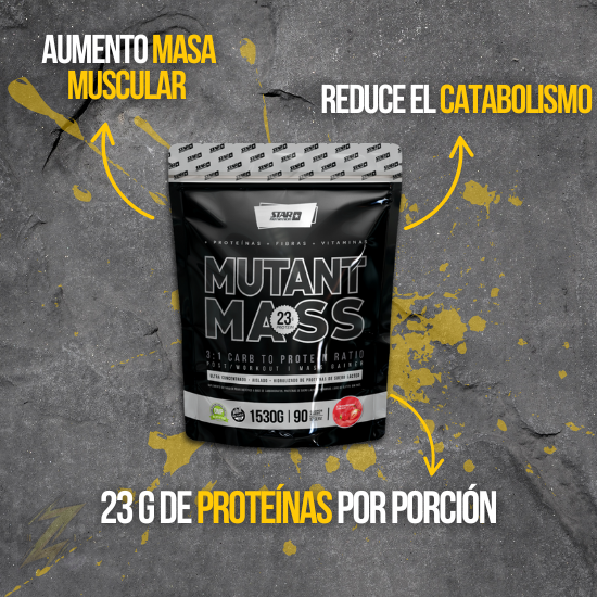 Mutant Mass de Star Nutrition es un ganador de peso diseñado para quienes buscan aumentar masa muscular de forma rápida y efectiva. Combina proteínas de alta calidad con carbohidratos complejos, aminoácidos y nutrientes clave para potenciar tu rendimiento, acelerar la recuperación y optimizar tus entrenamientos.